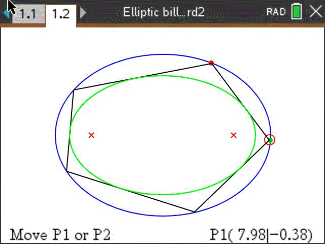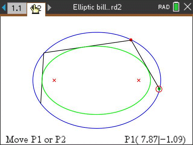 The program illustrates two theorems from the dynamics of elliptic billiard.