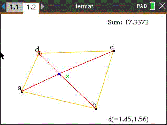 Given a set S of points in the plane, the Fermat point of S minimizes the sum of distances from the points of S.