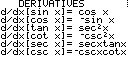 A very small program listing the four basic and trigometric derivatives. Ported from the 86.