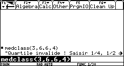 Medclass est un programme pour Ti89/Ti92/Ti92Plus, écrit en Ti-Basic. Il permet de calculer la médiane (2° quartile), le 1° et le 3° quartile d'une série classée de variables et d'une liste d'effectifs. Il sera utile à ceux qui étudient les statistiques entre autres.