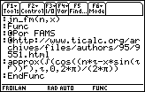 ENGLISH: Bessel function of the first kind order n Jn(x)=jn_fm(n,x), for integer values of n. TI-89, TI-92, TI-92 Plus, Voyage 200 and TI-89 Titanium compatible. ESPAÑOL: Función de Bessel de primera clase de orden n Jn(x)=jn_fm(n,x), para valores enteros de n. Compatible con TI-89, TI-92, TI-92 Plus, Voyage 200 y TI-89 Titanium.