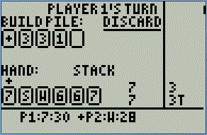 Skip-Bo in TI-BASIC!!! same as Skip-Bo, the card game. 2 to 6 players, no AI, no continue, But awesome game! rules follow those on the instructions for Skip-Bo. more info on the ReadMe.txt