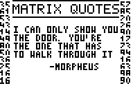A program that displays a random Matrix quote. Features 30 memorable matrix quotes, as well as a few animations to complement the program.