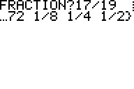 AEGYPT2: This program decomposes fractions into sums of unit fractions: Egyptian fractions. The ancient Egyptians did not write 5/8, but 1/2+1/8, because they didn't have a system for the compact notation m/n, hence the name. They are presented, in general, in descending order, i.e. the denominators get smaller and smaller. The method in this program is to subtract the second biggest, or sometimes the third, or smaller, biggest unit fraction from the number that results in the remainder getting a smaller denominator. This makes it likely, but not necessary, that the next such unit fraction to subtract is bigger than the previous. This is repeated until the remainder itself is a unit fraction. With this method the unit fractions does not become so small as with Fibonnaci's method. When finished, the program pauses a list with the unit fractions, and then shows a list with their denominators. AEGYPT3: This program is different, but works in principle the same way. However it gives the same answers. At least for the numbers I've checked. AEGYPT4: This program is a modification of Fibonnaci's method. It gives pretty much the same answers as the other programs. But here the unit fractions become smaller and smaller in general. AEGYPT0: This program uses Fibonnaci's method. It is submitted for comparison. There is a link to a page on the subject in the text file.