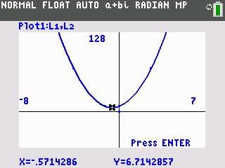 The Program GRAPHS the quadratic function y = Ax^2 + Bx + C and SOLVES the quadratic equation Ax^2 + Bx + C = 0. 1. The solutions display in SIMPLIFIED radical form, and in decimal form, 2. The graph shows the intercepts and vertex allowing you to move from point to point using the right and left arrow keys, 3. The vertex (h, k) is given allowing you to create the form y = A(x – h)^2 + k. 4. The discriminant, Disc, and the focus are given.