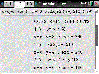 This program offers a simple tool to finding the extremum of a target ("objective") function subject to up to four constraints g(x,y), h(x,y), k(x,y and l(x,y). OS 4.3 obligatory because of the new graph-funtion "relation" !