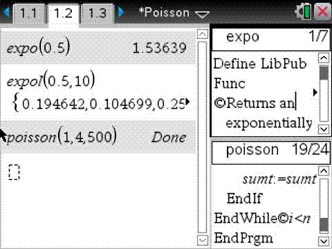This file contains two BASIC functions (expo and expol) and a BASIC program (poisson). They illustrate the relation between exponentially distributed interarrival times of an event and the Poisson distributed numbers of events in a time interval of fixed length.