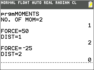 Find the resultant moment acting about an axis of rotation with this program! Simply specify the number of moments, and their respective forces and perpendicular distance from the axis of rotation. Depending on your sign convention, opposite moments should have a negative force. This program aims to reduce the burden and likelihood of error when calculating the moment manually.