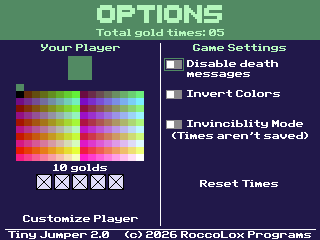 Tiny Jumper 2 is a speed-running platformer, where you must navigate through obstacles to complete levels as quickly as possible. This sequel has new levels, new obstacles, and new secrets...